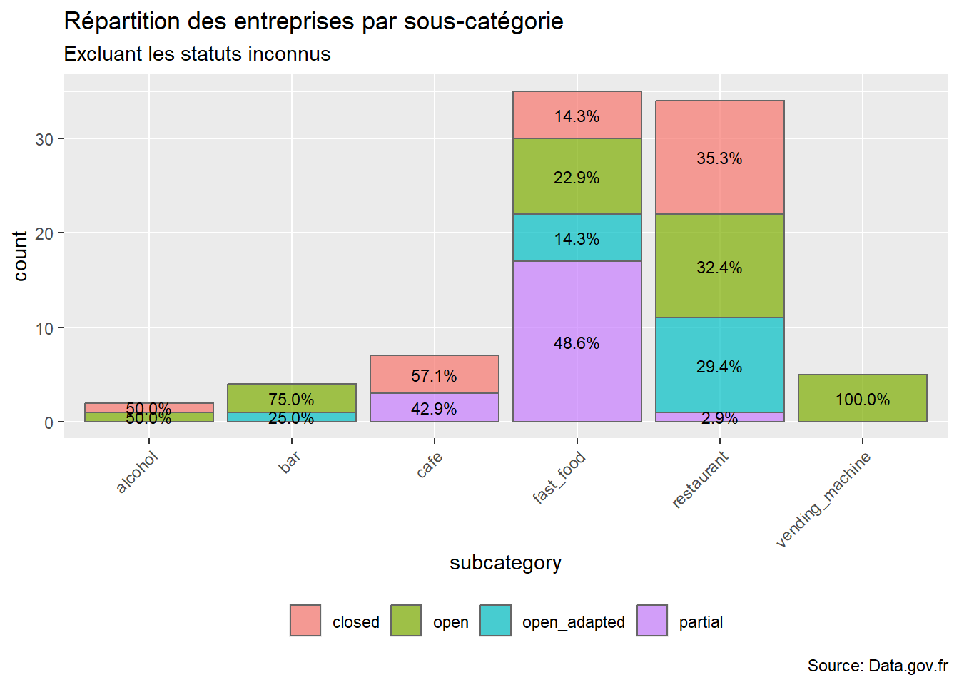 Le covid avait influencé pleinement beaucoup de secteurs dans plusieurs villes. Sur la cartographie suivante, on illustre pour la ville de Rennes les états principaux des différents secteurs.